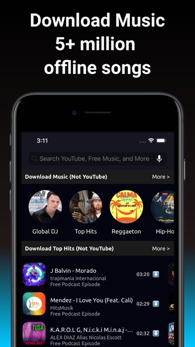 Free MP3 downloader and offline/online music player. Smart player and fast MP3 downloading engine. The most feature-rich music player with unique features: Sonos casting, nearby music recognition, FM Radio, powerful equalizer, AI recommendations, and much more. Beautiful dark theme. All features are free! Stream online music for saving device space or download songs and listen offline! The application provides downloading and streaming for non-commercial use only. All music content is legal and is under a Creative Commons license. There are more than 5+ million MP3 songs to download. Note: This app is not YouTube music downloader. YouTube music can be streamed but not downloaded. * Unlimited free music for unlimited time! All the app features for free! No limited skips, no any kind of accounts/subscriptions needed, no purchases at all! * YouTube streaming: listen to 150+ millions of free songs from YouTube. * Listen to other users' playlists or import your own playlists from YouTube * Smart search: search any songs, artists, albums, artists, singles, covers, remixes, and more. * Powerful 10 band equalizer with presets - enjoy your music in your way! * Music playing nearby recognition - discover new tracks on the go! Tap the mic button, and the app will identify nearby music track and also will build similar songs playlists. * FM Radio streaming - 90000+ Radio stations. * YouTube playlists import * All music player controls: repeats, shuffle, and more. * Intelligent recommendations for featured music. * Daily updated top charts and trending music playlists. * Non-stop playback station mode based on smart AI recommendations. * Create and manage your favorite playlists with any content: online, podcasts, offline, etc. * Share your music and playlists with your friends! * Synchronization with your Dropbox music cloud. * Tons of different genres, moods, and other categories of music: Pop, Rock, Rap, RnB, Latin, Dubstep, Drum, Electronic, etc. * Rich audio and video lossless music format support: FLAC, ALAC, OPUS, MP3, AAC, OGG, M4A, WAV, AIFF, M4R, WMA, and many others. * Sleep timer: fall asleep to your favorite music. Start your music, and then set the countdown timer. At the end of the countdown, the app softly stops your music. This app is the best source of unlimited music. The app has over 150 million online music tracks and over 5 million high-quality MP3 songs for you to listen to new or favorite artists.