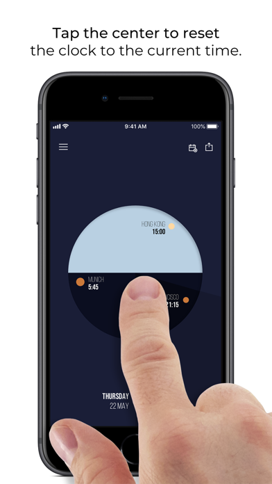 One world. Onetime. Finally, a world clock that integrates all time zones into one easy-to-read dial. We are all living and working globally more and more, so we needed a way to simply see the time in cities around the world at a glance. That's how Onetime was born. Built on the metaphor of the earth's rotation, Onetime displays all the cities that matter to you as they move through the day and night in a natural, clockwise direction referencing the international date line. Whether you are scheduling an international call or checking to see what time it is back home, Onetime is the clock for you. No more mistakes adding and subtracting hours, no more confusing GMT numbers, no more remembering daylight savings calendars. Onetime takes care of it all, automatically. And with Timetravel™, you can fly through time so that you quickly find the right moment to schedule that important teleconference with your international colleagues or catch your loved ones before their bedtimes. The „Share" feature lets you choose a date with TimeTravel and send an invite via message or email. Give up your wall of newsroom clocks and switch to Onetime today. Onetime. By FLUID. ABOUT FLUID Onetime was created by the award-winning design firm FLUID. With our locations in Munich and Silicon Valley and our international client base, the FLUID team is a heavy Onetime user, too.