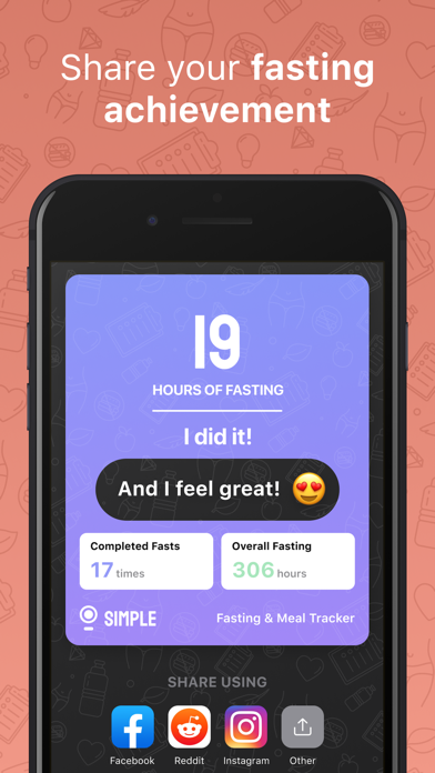 Simple fasting and meal tracker app is the easiest way to keep track of your eating habits, get personalized insights about your health, and make your daily fasting routine better. Benefit from the most popular, healthy, and effective weight-loss method, trusted by hundreds of millions adopters worldwide! Perfect for establishing a basic eating discipline, Simple is ideal for keeping yourself in good shape during self-isolation, with our educational and motivational content on staying mindful about your eating habits. Popularized by celebrities like Hugh Jackman and Beyoncé, intermittent fasting is the most ancient eating pattern known to humans. It's trusted in most religions, but anyone can use its benefits. Unlike popular new fads, intermittent fasting makes your body work precisely as it was designed by mother nature. It helps lose and control your weight and reinstating normal processes in your body that you've lost due to frequent eating. Even shorter fasting periods (12 hours or more) may result in weight loss, improved metabolic flexibility, and lower the risk of metabolic diseases. Just remember: IF is not a diet, fad or quick fix. It does not tell you what you can't eat but instead asks that you eat within a specific window of time each day. This is a simple lifestyle change that will jump-start weight loss and better health by enabling your metabolic system to work as it was designed. But many people are deterred from trying IF because they think it's difficult and they don't know how to start. That's where Simple comes in. You don't have to know anything about Fasting. Because we are not just a fasting tracker, our mission is not to offer you just an Intermittent Fasting tool. We provide you health, weight loss, and cognitive power instead. We'll adjust your customized program, teach you what IF is, give a lot of different content, lifehacks, and advice to make IF adoption mindful and easy. You'll get daily support, customized guidance, expert advice, true motivation, and easy life hacks that will help you succeed. Simple will keep track of your eating habits to help you adjust your customized fasting program as needed. We will provide you with personalized insights on how to get the most out of intermittent fasting. - Customized tips and hacks delivered daily - Smart and flexible tracking. Start/end your fasts with one quick click - A step-by-step guide to intermittent fasting - Custom fasting protocols - Easy-to-use meal journal for mindful eating Simple Fasting protocols: - 16-Hour (16:8) Intermittent Fast - Circadian Rhythm Fasting - 18:6 - 20:4 - 14:10 - OMAD - one meal a day HEALTH APP INTEGRATION: Simple integrates the following data from the Health app (HealthKit) to keep track of your body status: - Steps - Weight - Water - Sleep SUBSCRIPTION INFORMATION Get a Simple PREMIUM SUBSCRIPTION and enjoy full access to all features and content. Our standard subscription options are: 1-month subscription for $14.99, a 3-month subscription for $29.99, a 1-year subscription for $39.99, or equal to the same price tier as Apple App Store Matrix determines as the equivalent of the subscription price in USD. Payment will be charged to iTunes Account at confirmation of purchase. Subscription automatically renews unless auto-renew is turned off at least 24-hours before the end of the current period. The account will be charged for renewal within 24 hours before the end of the current period, and identify the cost of the renewal. The user may manage subscriptions in the iTunes settings. Auto-renewal may be turned off by going to the user's Account Settings after purchase. Any unused portion of a free trial period, if offered, will be forfeited when the user purchases a subscription to that publication, where applicable. For more information, please visit the link https://support.apple.com/en-us/HT202039 Privacy Policy: http://simple.life/privacy.htm Terms of Use: http://simple.life/tos.htm